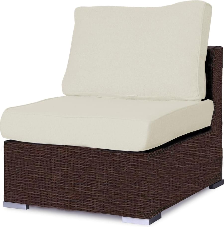 Do siedziska i oparcia dołączone są wygodne, grube poduchy w kontrastowym kolorze Ecru. Poduszki te są zaimpregnowane teflonem, dzięki czemu są bardziej odporne na działanie wilgoci. Poszewki można zdjąć i wyprać. Moduł środkowy mebli nie wymaga konserwacji, a do mycia wystarczy użyć mokrej ściereczki. Ten eleganckim moduł środkowy technorattanowy jest estetycznie wykonany i bardzo wygodny.