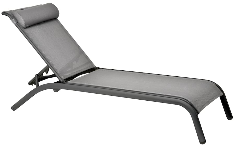 Alexander Rose Portofino Lite leżak ogrodowy 470 w kolorze szarym wykonano z aluminium pomalowanego proszkowo w kolorze szarego żelaza. Posiada on również zapięcie w kolorze szaro-różowym, prążkowane. Aluminium jest materiałem, który jest odporny na korozję, działanie niekorzystnych czynników atmosferycznych i promieniowania UV, dzięki czemu mebel ten z powodzeniem może stać na zewnątrz nawet przez cały sezon, nie tracąc swojego kształtu i koloru.