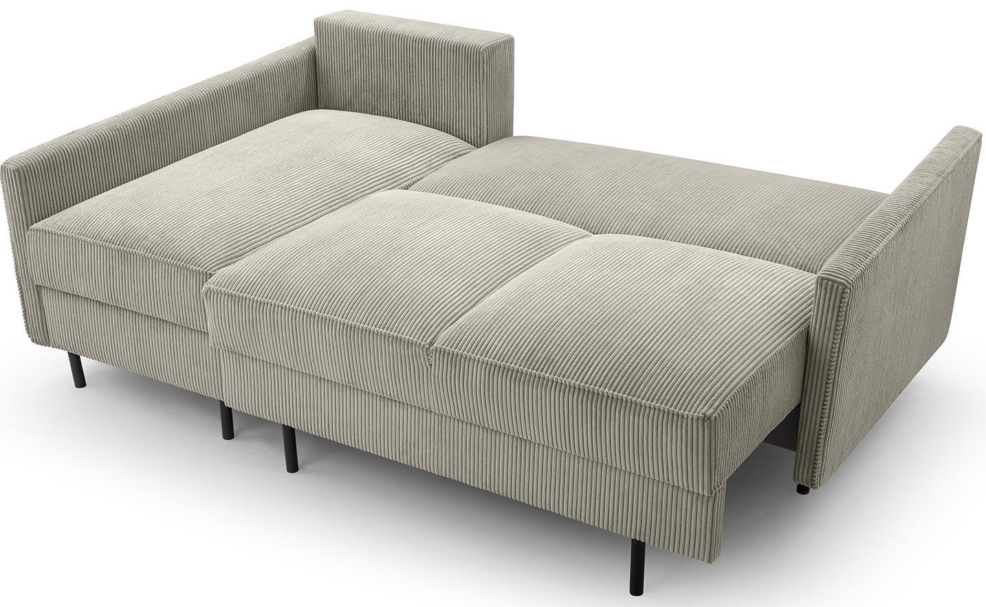Narożnik za dnia pełni funkcję eleganckiej i wygodnej kanapy, a w nocy błyskawicznie i bez trudu przeobrazić można go w dodatkowe łóżko o powierzchni spania 203x145 cm. Model wyposażony został w wygodną i prostą w użyciu funkcję rozkładania typu DL - rozłożenie praktycznie nie wymaga siły, a sam mechanizm cechuje dużo niezawodność. Narożnik Robin wyposażony także został w dwa obszerne pojemniki na pościel, który znajdują się pod siedziskiem.