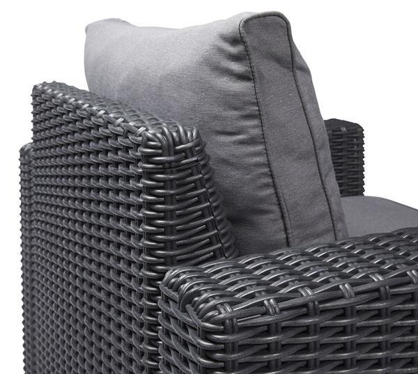 Fotele z zestawu California 3 Seater cechuje atrakcyjny wygląd wizualny. Odpowiednie połączenie kolorystyczne mebli i dołączonych poduszek dodają kompletowi dodatkowej elegancji. Funkcjonalności dodają poduszki ze zdejmowanymi poszewkami dzięki którym nawet ich ubrudzenie nie będzie stanowiło problemu.