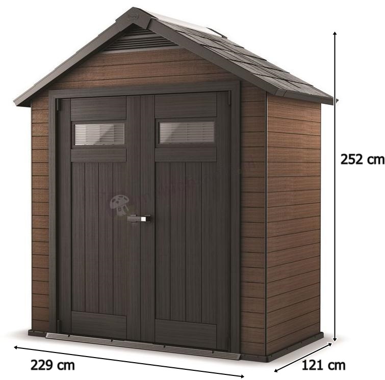 Domek Fusion 754 wykonany jest z wysokiej jakości tworzywa sztucznego WPC, które dzięki zabiegowi stylistycznemu przeprowadzonego w procesie produkcji wygląda jak drewno i ma jego strukturę. W przeciwieństwie do naturalnego materiału domek ogrodowy Keter Fusion nie wymaga impregnacji czy konserwacji. Można powiedzieć, że jest niemal bezobsługowy. Do czyszczenia domku można stosować zwykły kercher z wodą. Dopuszczalne jest stosowanie łagodnych środków czyszczących.