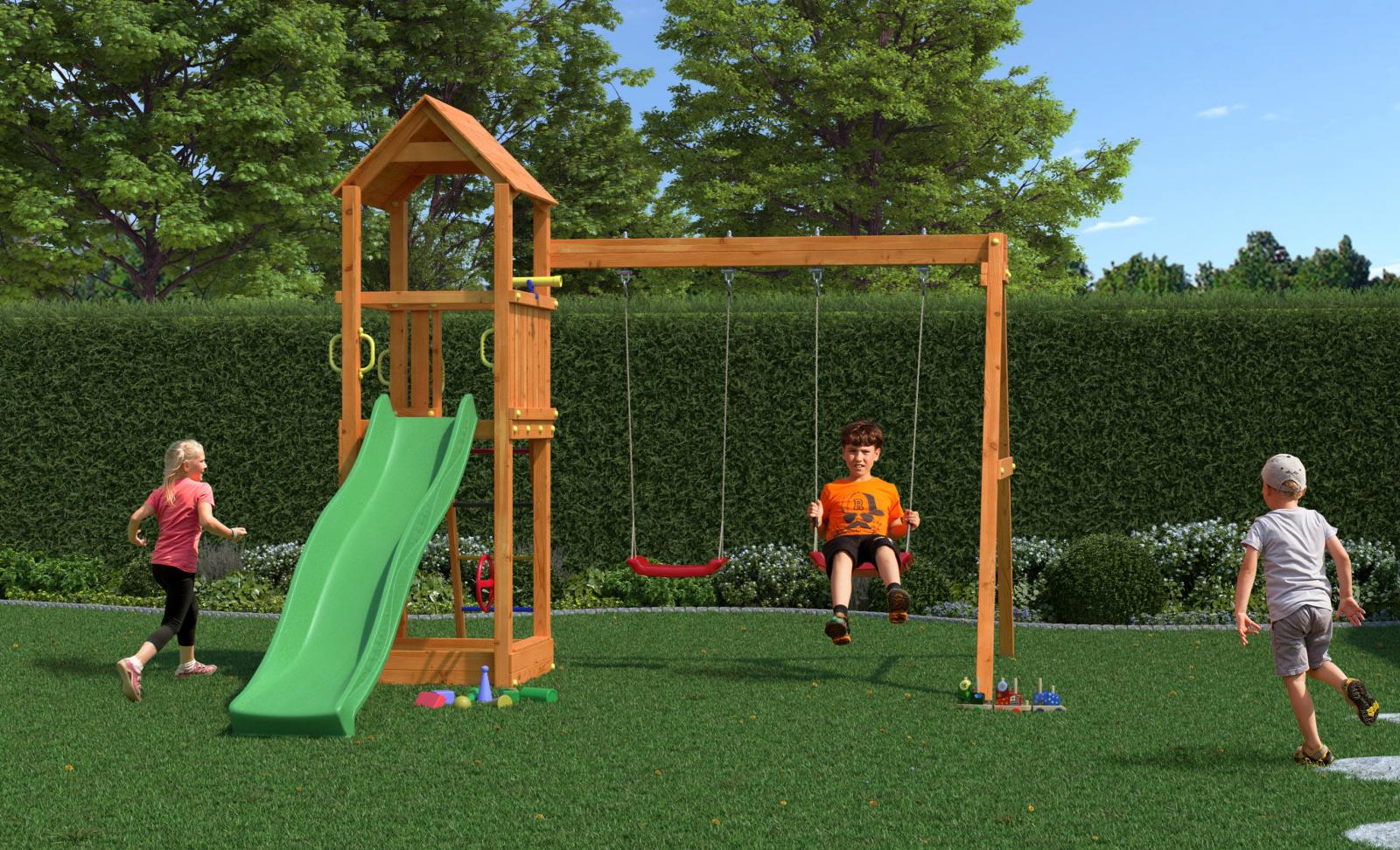Plac zabaw Flappi to zestaw, który na niewielkiej powierzchni łączy wiele funkcji. Zadaszona wieża z platformą ze ślizgiem to idealna zabawka dla chłopców i dziewczynek. Plac zabaw zapewni dzieciom mnóstwo zabawy na świeżym powietrzu.