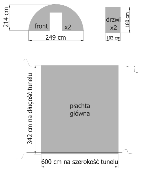 płachty głównej o wymiarach 3,42m długości, 6m szerokości