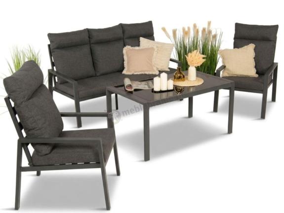 Miękkie poduszki siedziskowe i oparciowe zapewniają wygodę podczas codziennego użytkowania, a ich impregnowane poszewki ograniczają wnikanie wilgoci.