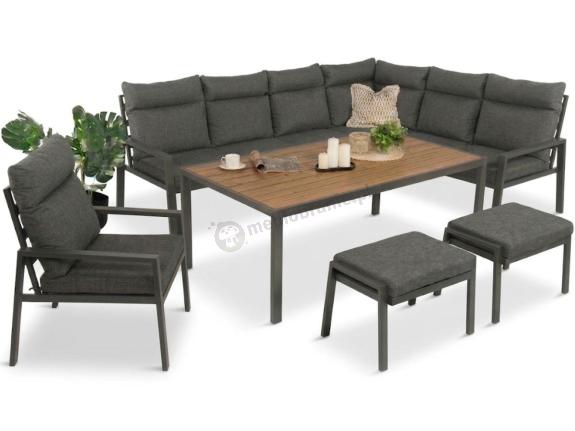 Grafitowy narożnik na taras z fotelem z wysokimi oparciami - metalowy stelaże - Doros Corner XL - Polywood Dark Grey