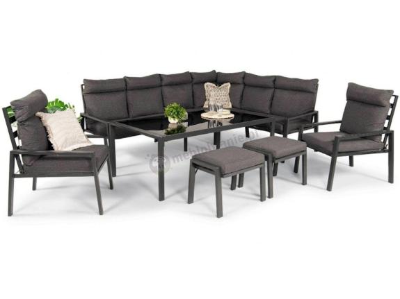 Grafitowy zestaw mebli ogrodowych z narożnikiem i dwoma fotelami wysoki stół Doros Corner XL - Dark Grey