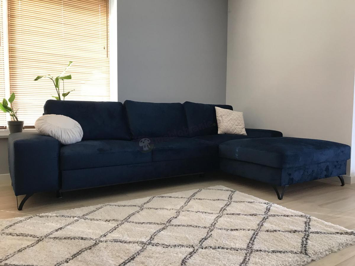 Granatowa rogówka welurowa z funkcją spania Flavio II prawostronny 293x179 cm