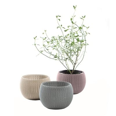 Doniczka Cozies M składa się z 2 elementów - efektownej, wyglądającej na wyplataną osłonki w atrakcyjnych kolorach, oraz wkładu, który można swobodnie wyjmować, co ułatwia prace typowo ogrodnicze. Wkład posiada otwór drenażowy, dzięki czemu w zależności od potrzeb można ją używać we wnętrzu, jak i na świeżym powietrzu.