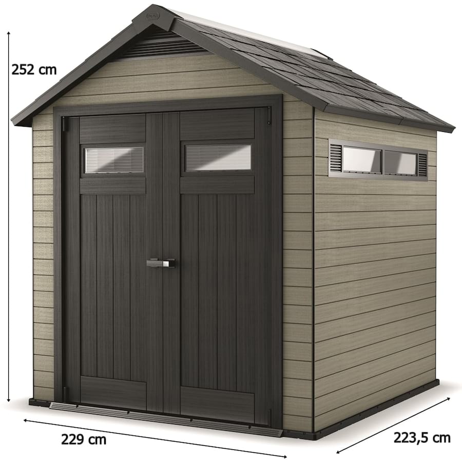 Domek narzędziowy Fusion 757 to model pochodzący z ekskluzywnej linii łączącej funkcjonalność i elegancki styl. Został wyprodukowany przez renomowaną firmę Keter zajmującą się od lat produkcją wyposażenia do ogrodu i nie tylko z wysokiej jakości tworzywa sztucznego.