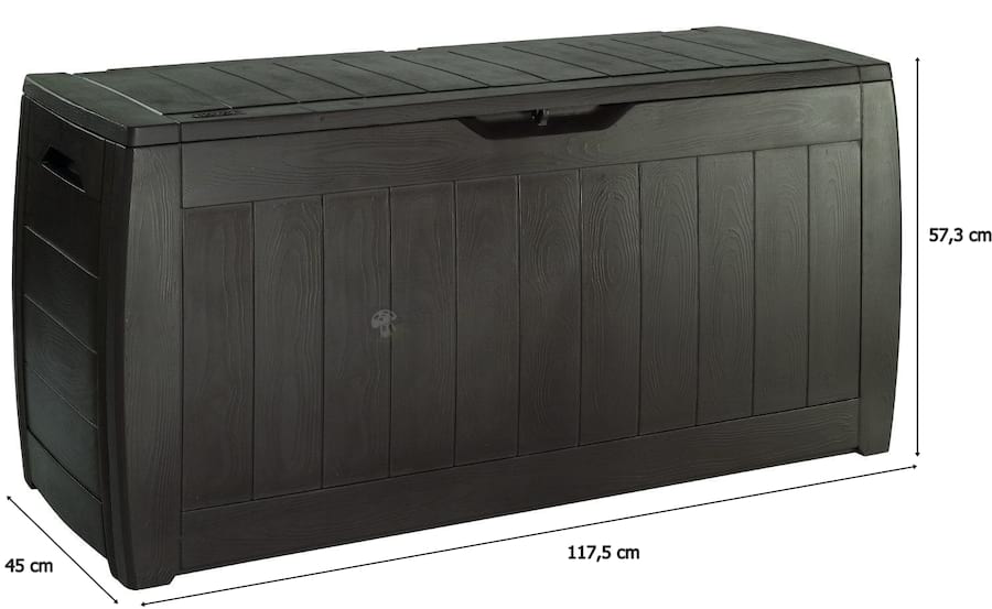 Wykonanie z tworzywa sztucznego zapewni wieloletnie użytkowanie. Skrzyni nie trzeba konserwować czy impregnować, jak to jest w przypadku podobnego wyposażenia wykonanego z drewna. Ponadto jest łatwa w czyszczeniu. Wystarczy do tego woda i ewentualnie łagodne środki czyszczące.
