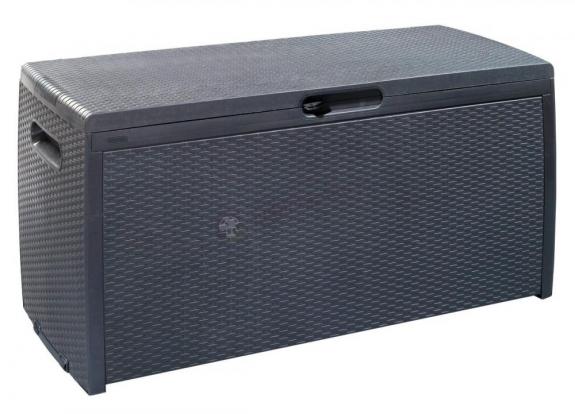 Skrzynia sprawuje się wzorowo. Idealnie pasuje do wczesniej zakupionego zestawu mebli rattanowych. Wrzucam wszystkie poduchy, pledy i deszcz im nie straszny. ;)