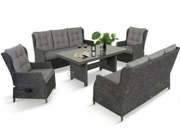 Komplet mebli ogrodowych z technorattanu Fiorento to kwintesencja stylu i wytrzymałości. W skład opisywanego kompletu wchodzą dwie duże, trzyosobowa sofa o szerokości 178cm, dwa fotele z regulowanym oparciem oraz duży stół ogrodowy o długości 160 cm. Na każde siedzisko i oparcie przewidziano wygodną poduszkę. To idealny wybór dla wymagających klientów, którzy pragną stworzyć w swoim ogrodzie przestrzeń pełną stylu i komfortu. Meble wykonane z wysokiej jakości materiałów zachwycają nie tylko estetyką, ale i odpornością na upływ czasu.