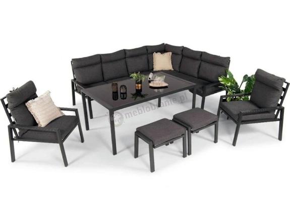 Komplet mebli ogrodowych z narożnikiem z wysokim oparciem i wysokim stołem 160cm, fotelami i pufami Doros Corner XL - Dark Grey