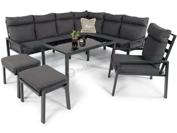 Zestaw modułowy - dwie sofy dwuosobowe, moduł narożny i moduł środkowy - pozwala swobodnie stworzyć narożnik prawo lub lewostronny, dzięki czemu bez trudu dopasujesz układ do tarasu czy balkonu. Stół o wymiarach 120x70 cm zapewnia wygodną przestrzeń do wspólnych posiłków i spotkań, tworząc idealne miejsce do relaksu w gronie bliskich.