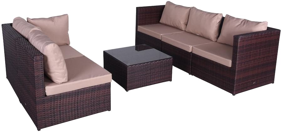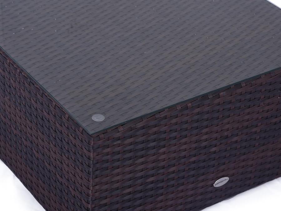Proponowany komplet ogrodowy z technorattanu FARLITO IX Brown Along & Latte to zestaw w kształcie narożnika, który składa się z pięciu modułów siedziskowych oraz stołu. Oparcia oraz podłokietniki w modułach mają 8cm szerokości, co sprawia że są wygodne oraz doskonale komponują się pod względem proporcji z całym kompletem mebli.
