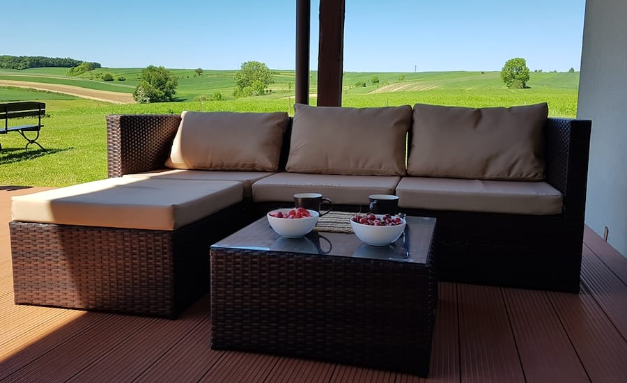 Meble technorattanowe ze stelażem stalowym mogą być użytkowane na tarasie bez zadaszenia - technorattan jest odporny na promienie UV.