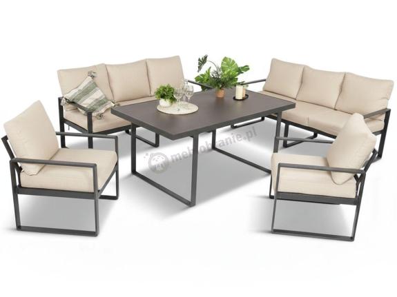 Meble ogrodowe Panaon to propozycja, która spełni oczekiwania nawet najbardziej wymagających Klientów. W skład opisywanego kompletu wchodzą dwie trzyosobowe sofy 175 cm, dwa fotele oraz wysoki stół obiadowy o powierzchni blatu 160x90 cm. Jest to idealny komplet obiadowy, dzięki któremu spożywanie posiłków wśród zieleni naszego ogrodu będzie prawdziwą przyjemnością. Komplet Panaon sprawdzi się także w drugiej roli - jako zestaw wypoczynkowy, przy którym można wygodnie poczytać książkę czy napić się kawy. Wszystko dzięki aż dwóm wygodnym sofom. Dzięki dodatkowym fotelom komplet Panaon Grande zapewnia miejsce dla 8 osób. Na każde siedzisko i oparcie przewidziano grubą poduszkę. Komplet wykonano z wysokiej jakości materiałów, zachowując jednocześnie najwyższą dbałość o każdy szczegół. Meble te nadają się zarówno do użytku wewnętrznego jak i zewnętrznego.