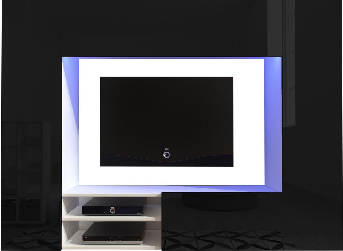 Meblościanka RTV nowoczesna Net pochodząca z kolekcji polskiego producenta Laski Meble to nowoczesny sposób na wyposażenie salonu. Jest to model bardzo elegancki, a jednocześnie praktyczny. Meblościanka ma kolor czarny - błyszczący.
