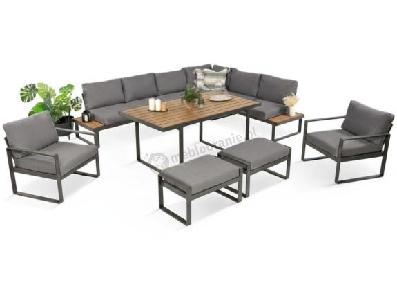 Karta produktu Modułowe meble obiadowe z narożnikiem z ławą i dwoma fotelami Panaon Grey Teak