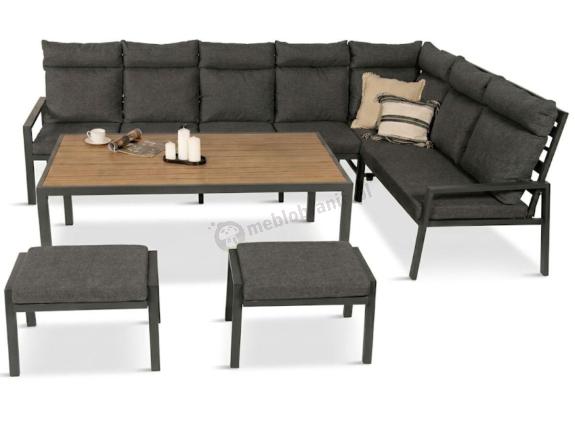 Narożnik na taras na metalowym stelażu ze stołem 160cm i pufami - Doros Corner XXL - Polywood Dark Grey
