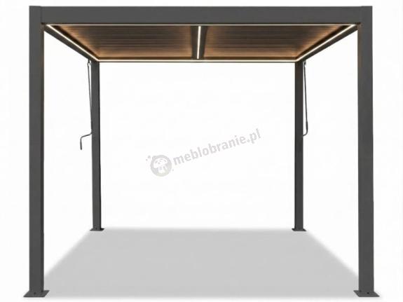 Nogi pergoli mają profil 10x10 cm, wykonane są z aluminium o grubości 1,3 mm - taka podstawa zapewnia stabilność całej konstrukcji. Pergola jest wolnostojąca, ma 4 nogi i nie wymaga przymocowania do elewacji.