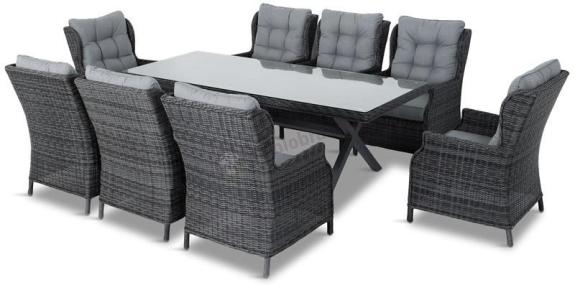 Zestaw mebli przyszedł zapakowany idealnie na palecie bez obaw że coś może być uszkodzone. Zakup bezproblemowy, zakupione w niedzielę dostarczone we wtorek. Meble w całości, jedynie stół wymagał złożenia. Trwało to może 5 min. Idealny zestaw zarówno na wypoczynek, grilla czy obiad bo stół jest na tyle wysoki. Fotele mega wygodne- rozkładane, na sofie również można się swobodnie położyć 🙂 Polecam ten zestaw i zakupy w meblobraniu👍