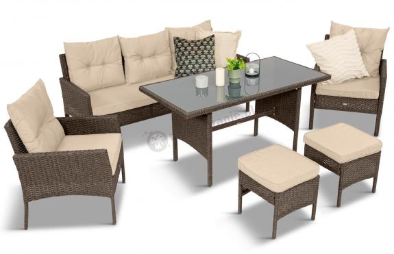 OUTLET - Meble ogrodowe z sofą 175cm, wysokim stołem, fotelami i pufami Perata Dining Brown