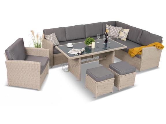 Meble pięknie się prezentują. Wykonanie solidne, bardzo wygodne i praktyczne. Super że pufy wsuwają się pod ławę co pozwala zaoszczędzić miejsce gdy nie są w użyciu. Stół zaskoczył nas swoją wielkością ale na plus. Jest dość duży ale przy nie masywny. Elegancki i łatwy w ustawieniu. Mały minus za poduszki nie są dopasowane, nie udało nam się tak ich ustawić by na siebie nie nachodziły, ale i tak w większości układamy je jak nam wygodniej. Montaż w miarę ok. Meble bardzo szybko dostarczone. Gorąco polecam.