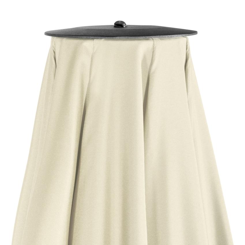 Tkanina wykorzystana w modelu Telestar 500 to w 100% poliester o gramaturze 180 g/m2, która spoczywa na 8 szprychach parasola. Czasza jest pokryta wodoodporną tkaniną waterproof odporną na warunki atmosferyczne i co bardzo istotne, można zdejmować ze stelaża do prania. Tkanina pochłania ok 80% światła i zapewnia ochroną przed promieniami UV 80+.Sugerowana masa podstawy to 120 kg - pozwoli ona zachować stabilność i bezpieczeństwo użytkowników. Podstawa nie jest dołączona do parasola.