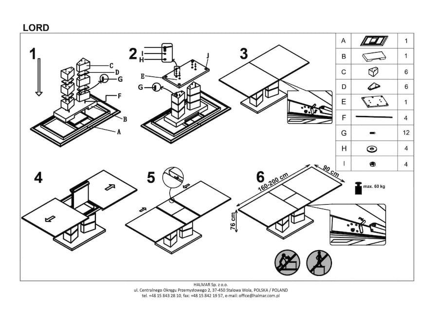 Rozkładany szary stół do jadalni Lord ma 75 cm wysokości, 90 cm szerokości i 160 cm długości bazowej. Niewątpliwą zaletą tego stołu jest możliwość wydłużenia blatu do 200 cm. Specjalna wkładka przedłużająca znajduje się pod blatem, co pozwala zaoszczędzić wiele miejsca. Stół po rozłożeniu zagwarantuje mnóstwo miejsca - idealnie sprawdzi się podczas rodzinnych obiadów, czy uroczystości wśród znajomych.