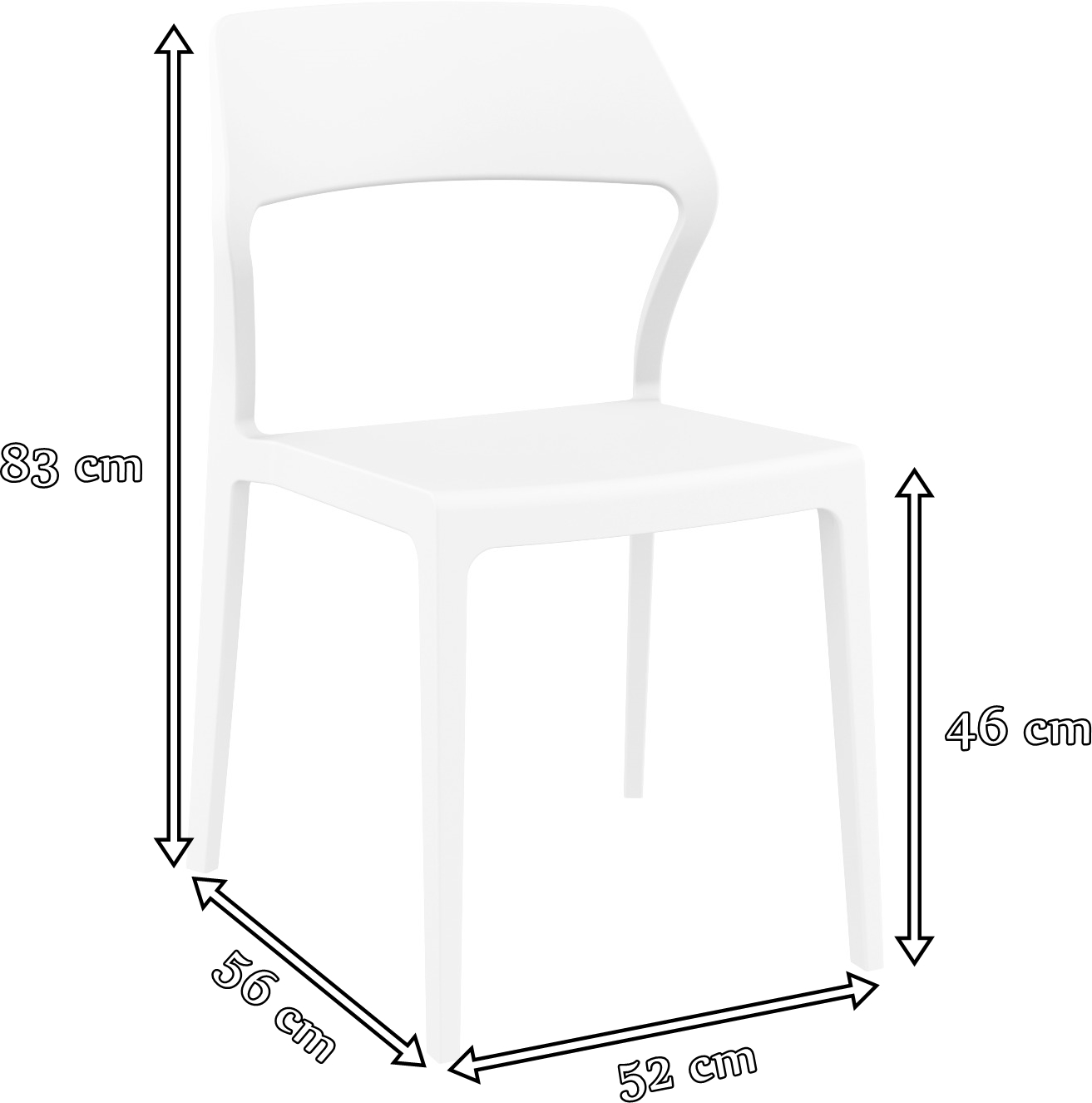 Siesta Snow White proste krzesło bankietowe posiada 83 cm wysokości całkowitej. Siedzisko znajduje się na wysokości 46cm, zaś jego głębokość to 56cm. Krzesło posiada 52cm szerokości. Snow White proste krzesło z polipropylenu można sztaplować do 20szt - dzięki temu możemy zaoszczędzić przestrzeń podczas przechowywania krzeseł. Model ten doskonale sprawdzi się w salach konferencyjnych, w kawiarni a także jako krzesło do kuchni.
