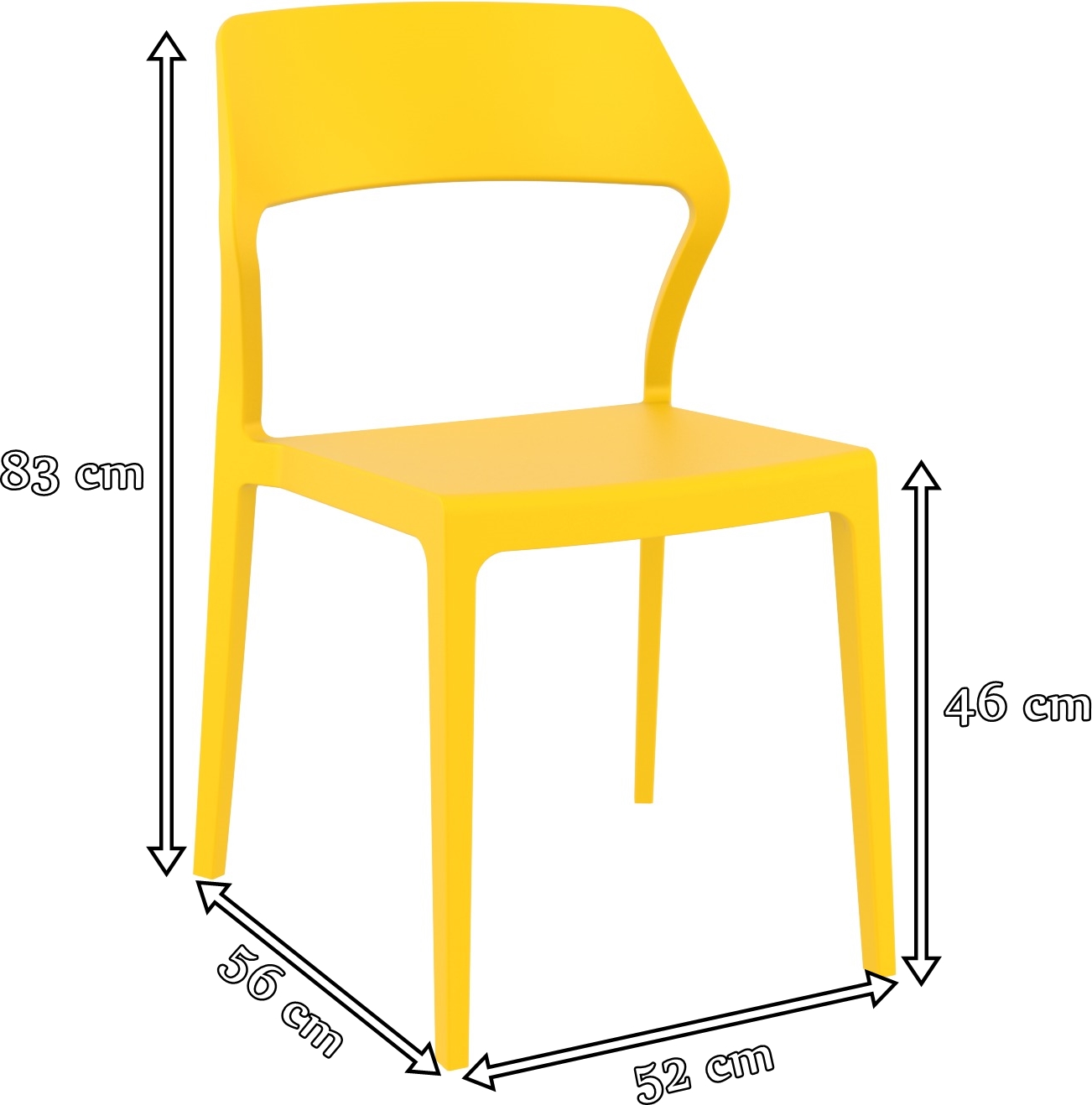 Siesta Snow Yellow krzesło bankietowe posiada 83 cm wysokości całkowitej. Siedzisko znajduje się na wysokości 46cm, zaś jego głębokość to 56cm. Krzesło posiada 52cm szerokości. Nowoczesne krzesło Snow Yellow można sztaplować do 20szt - dzięki temu możemy zaoszczędzić przestrzeń podczas przechowywania krzeseł. Model ten doskonale sprawdzi się w salach konferencyjnych, w kawiarni a także jako krzesło do kuchni.