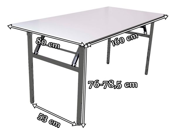 Stół składany o wymiarach blatu 160x80cm doskonale sprawdza się zarówno w zastosowaniach prywatnych, jak i komercyjnych. Konstrukcja stołu wykonana jest w oparciu o wytrzymały stelaż metalowy. Stelaż został przygotowany w oparciu o profil stalowy malowany proszkowo na kolor szary. Dzięki zastosowaniu autorskiej konstrukcji stelaża mogi stołu połączone są metalowymi wspornikami, co istotnie zwiększa wytrzymałość stołu i usztywnia blat.