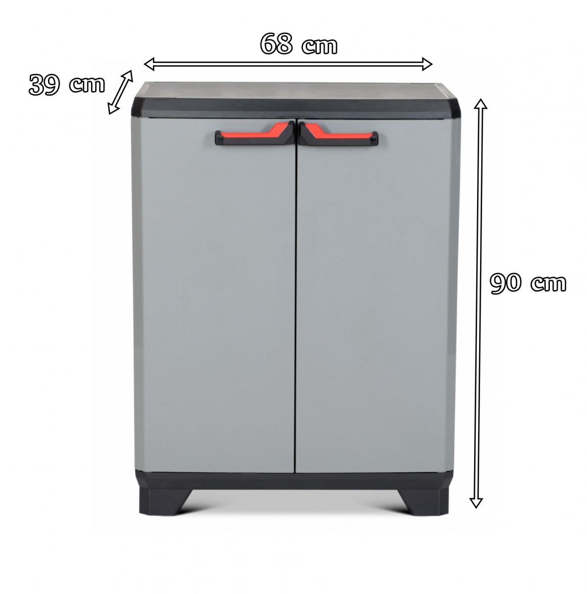 Szafka narzędziowa Stilo Low Cabinet ciemnoszara ma głębokość 39 cm, długość 68 cm i wysokość 90 cm. Grubość ścianek 1,65mm. Mebel należy samodzielnie zmontować. Cały proces jest łatwy i szybki dzięki załączonej instrukcji. Istnieje możliwość zabezpieczenia drzwi szafki do przechowywania kłódką. Szafka Stilo Low Cabinet ciemnoszara jest jednolita pod kątem wykończenia z innymi modelami z serii Stilo od marki Kis.