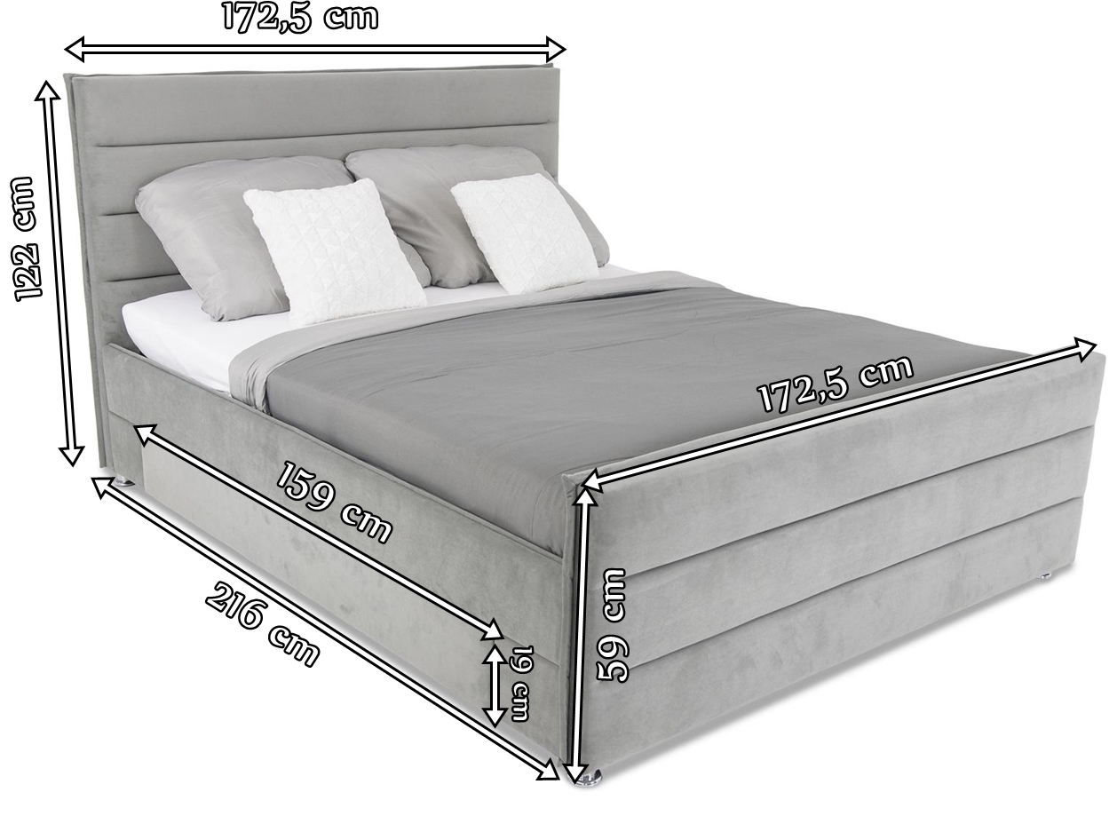 Łóżko do sypialni Bajamo z tapicerowanym zagłówkiem to stylowe rozwiązanie, które nada szyku każdej sypialni. Łóżko tapicerowane Bajamo wykonane zostało z wysokiej jakości materiałów, co gwarantuje trwałość mebla. Model Bajamo posiada stylowy zagłówek z eleganckim wzorem - proste, poziome, nowoczesne pikowanie - taki styl pasować będzie do każdej sypialni. Całość zachowana została w przyjemnym dla oka odcieniu szarości.