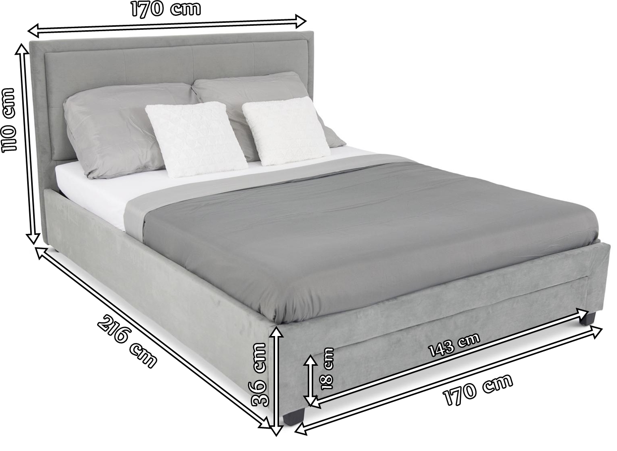 Mebel spoczywa na nóżkach wykonanych z drewna. Wytrzymały stelaż łóżka wykonany jest z litego drewna. Powierzchnia spania to 160 x 200cm.
