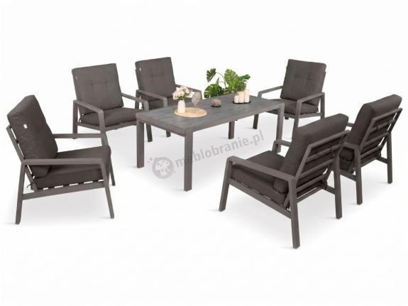 Tavaro to minimalistyczne i nowoczesne meble ogrodowe, które jednocześnie zapewniają maksymalną wygodę wypoczynku. W skład opisywanego kompletu wchodzi sześć wygodnych foteli oraz duży stół obiadowy z blatem z hartowanego szkła o wymiarach 180x80cm. Jest to komplet idealny do spożywania posiłków na świeżym powietrzu, ale będzie to także świetny zestaw wypoczynkowy, przy którym można wypić kawę czy poczytać książkę na dużej sofie. Komplet zapewnia miejsce dla 6 osób. Na każde siedzisko i oparcie przewidziano grubą poduszkę.
