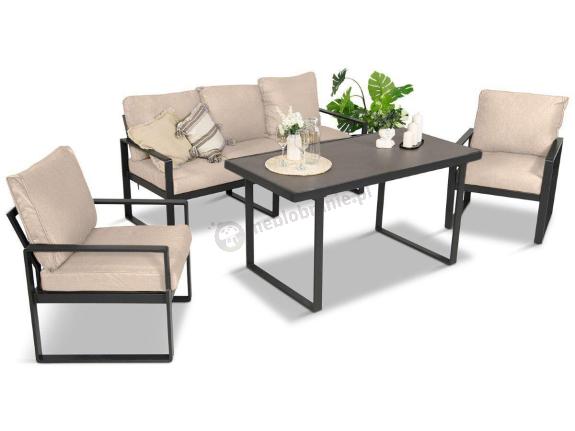 Zestaw mebli tarasowych prezentuje się bardzo elegancko i nowocześnie. Kanapa 3-osobowa jest wygodna, a poduchy w szarym kolorze dobrze komponują się z całością i łatwo dopasowują do innych dodatków ogrodowych. Fotele są solidne i komfortowe, a stół ze szklanym blatem imitującym kamień wygląda stylowo i nadaje całości charakteru. Konstrukcja stalowa sprawia wrażenie trwałej i stabilnej. Meble są funkcjonalne, dobrze sprawdzają się zarówno podczas codziennego odpoczynku, jak i spotkań w większym gronie. Świetny wybór w tej kategorii cenowej.
