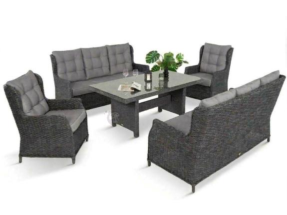 Komplet mebli ogrodowych z technorattanu Fiorneto to kwintesencja stylu i wytrzymałości. W skład opisywanego kompletu wchodzą dwie duże, trzyosobowe sofy o szerokości 178cm, dwa fotele oraz duży stół ogrodowy 160x90 cm. Na każde siedzisko i oparcie przewidziano wygodną poduszkę. To idealny wybór dla wymagających klientów, którzy pragną stworzyć w swoim ogrodzie przestrzeń pełną stylu i komfortu. Meble wykonane z wysokiej jakości materiałów zachwycają nie tylko estetyką, ale i odpornością na upływ czasu.